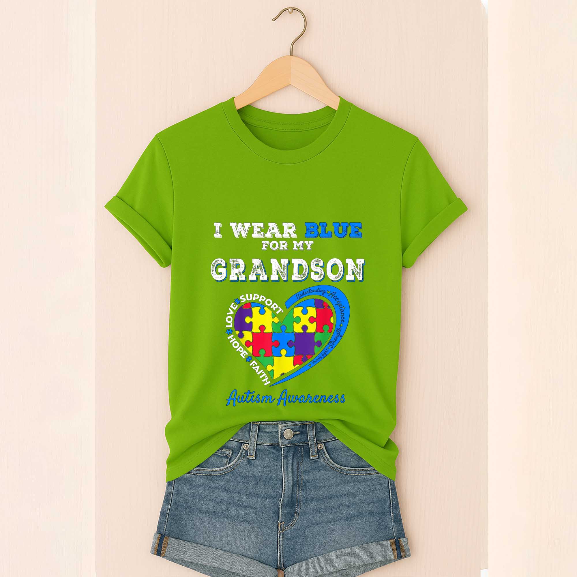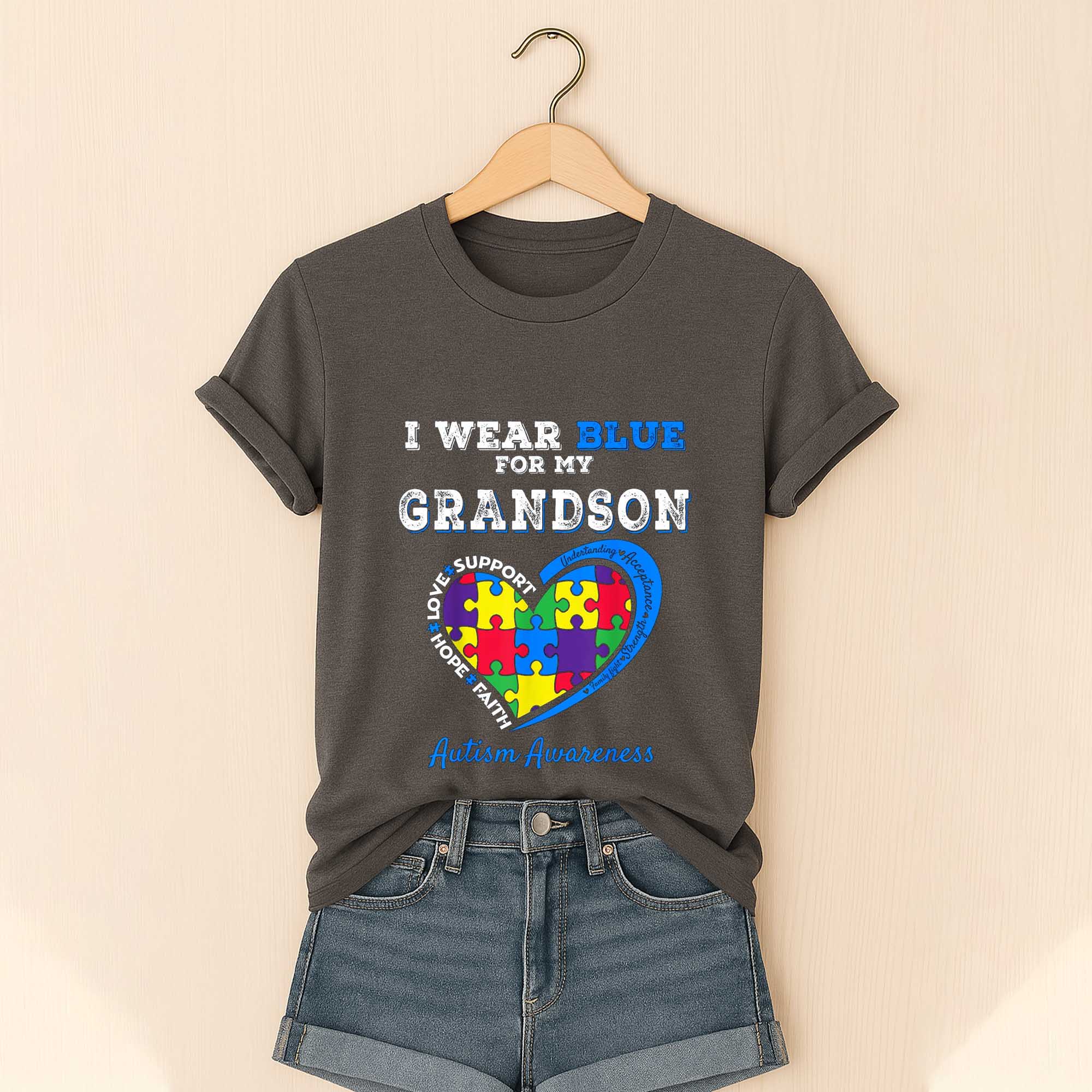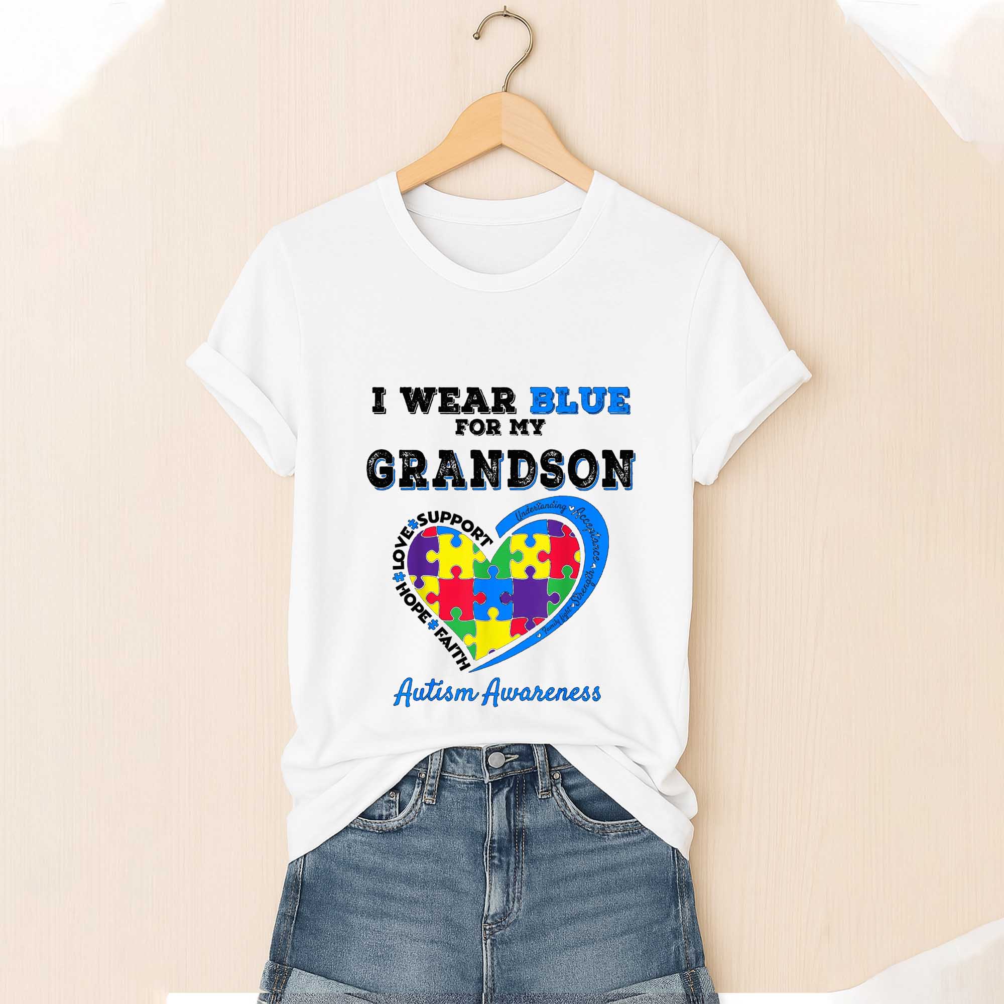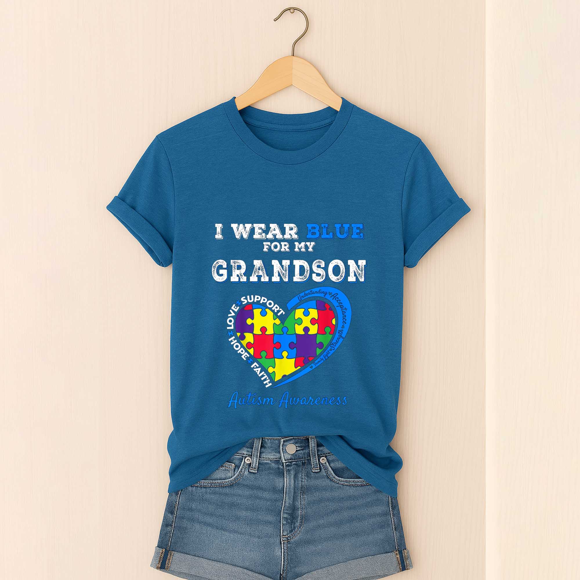 Autism Awareness I Wear Blue For My Grandson Love Support Hope Faith Shirt