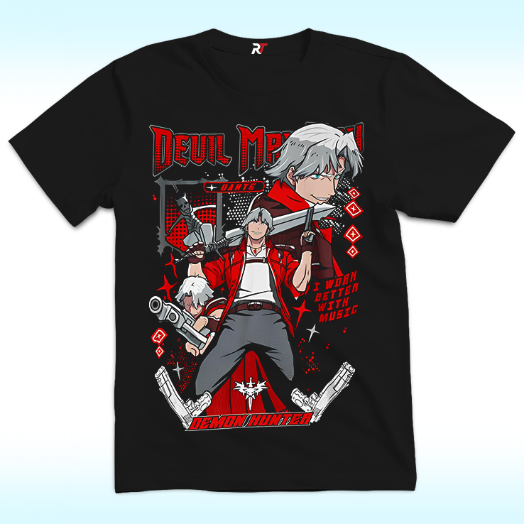 Love Dante Demon Hunter Shirt, I Work Better With Music? Personalize it your way with our custom options! Choose your design, colors, and style to reflect your personality, convey a special message, or craft a one-of-a-kind gift.
