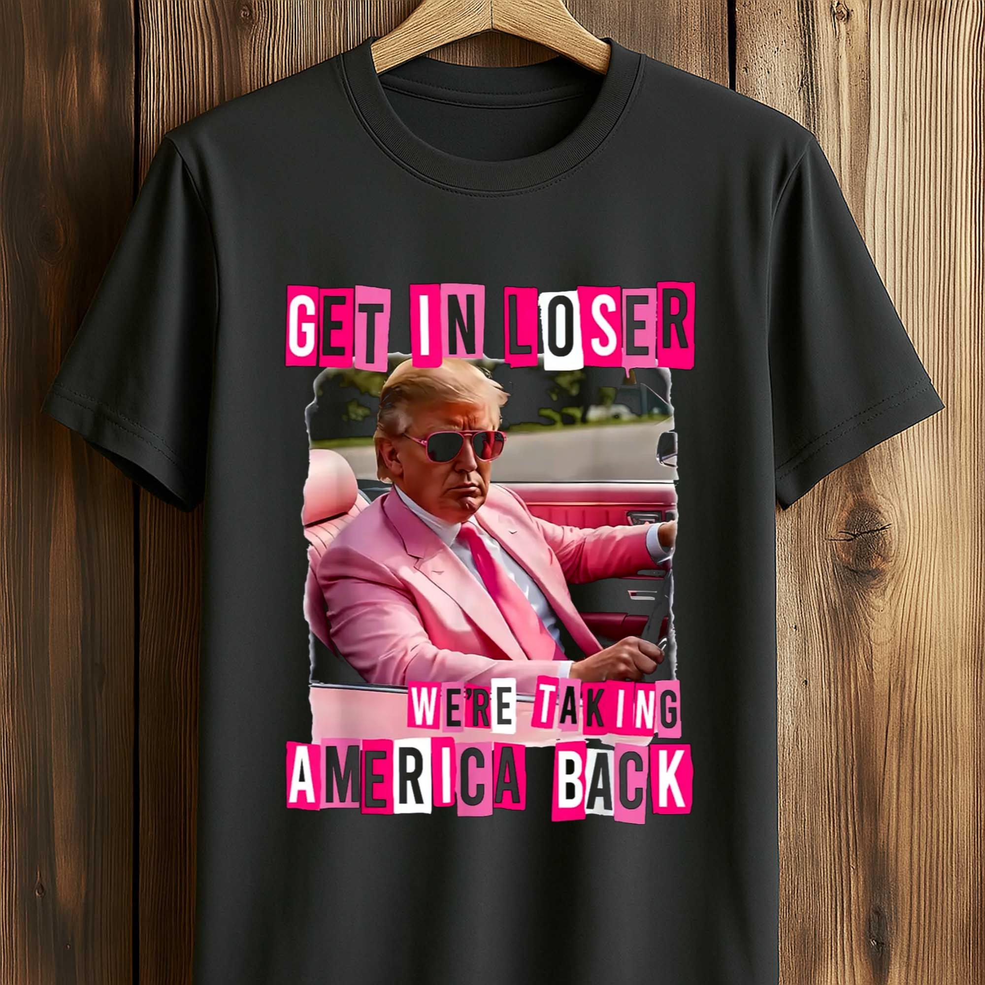 Love Get In Loser We're Taking America Back Shirt? Personalize it your way with our custom options! Choose your design, colors, and style to reflect your personality, convey a special message, or craft a one-of-a-kind gift.