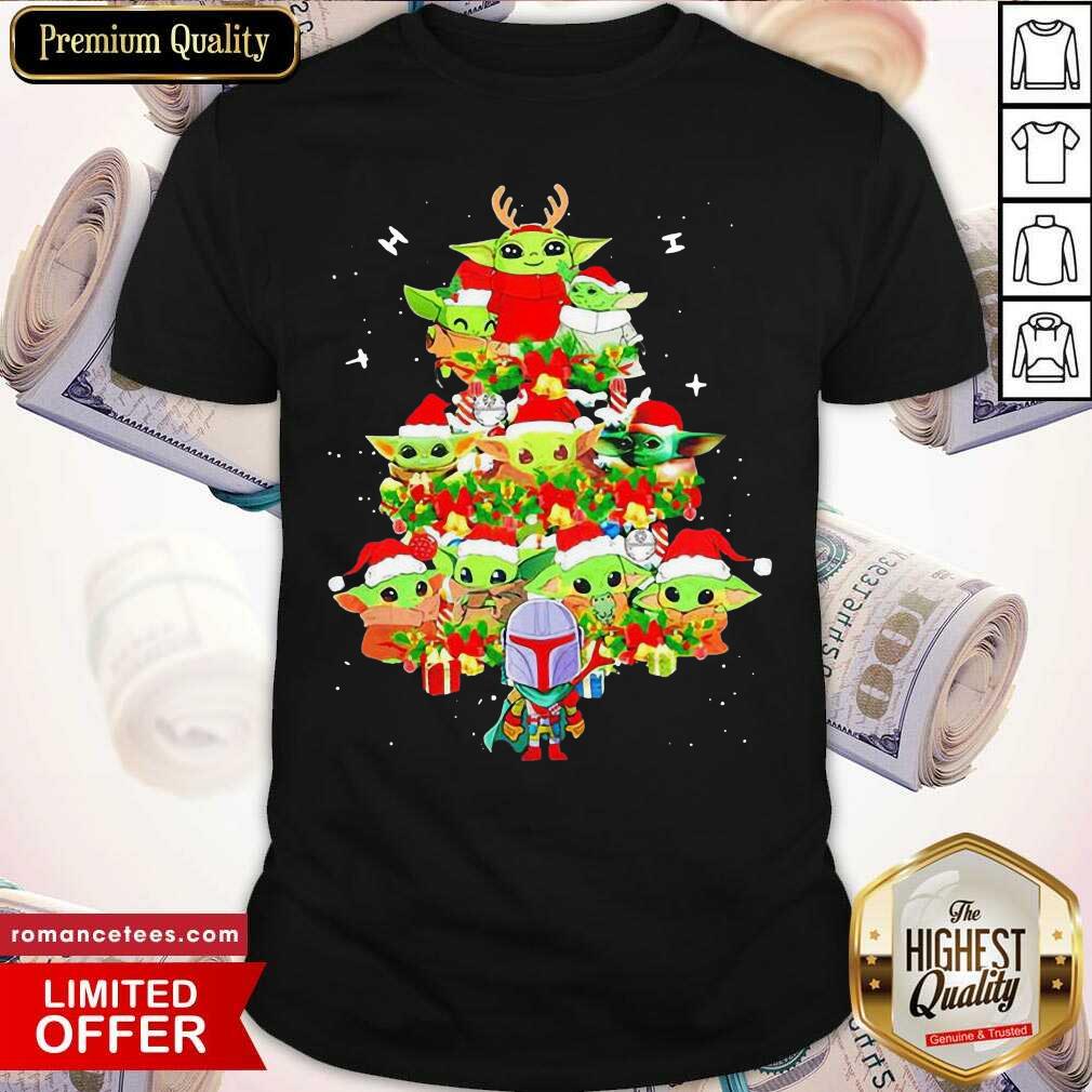Hot Baby Yoda And The Mandalorian Merry Christmas Tree Gift Shirt