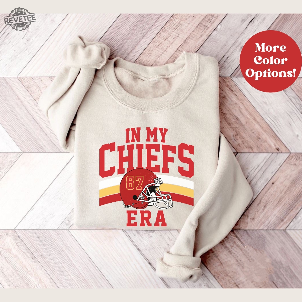 Love In My Chiefs Era 87 Sweatshirt Travis Kelce Shirt Chiefs Afc Championship Chiefs Championship Shirt Karma Is The Guy On The Chiefs Unique? Personalize it your way with our custom options! Choose your design, colors, and style to reflect your personality, convey a special message, or craft a one-of-a-kind gift.