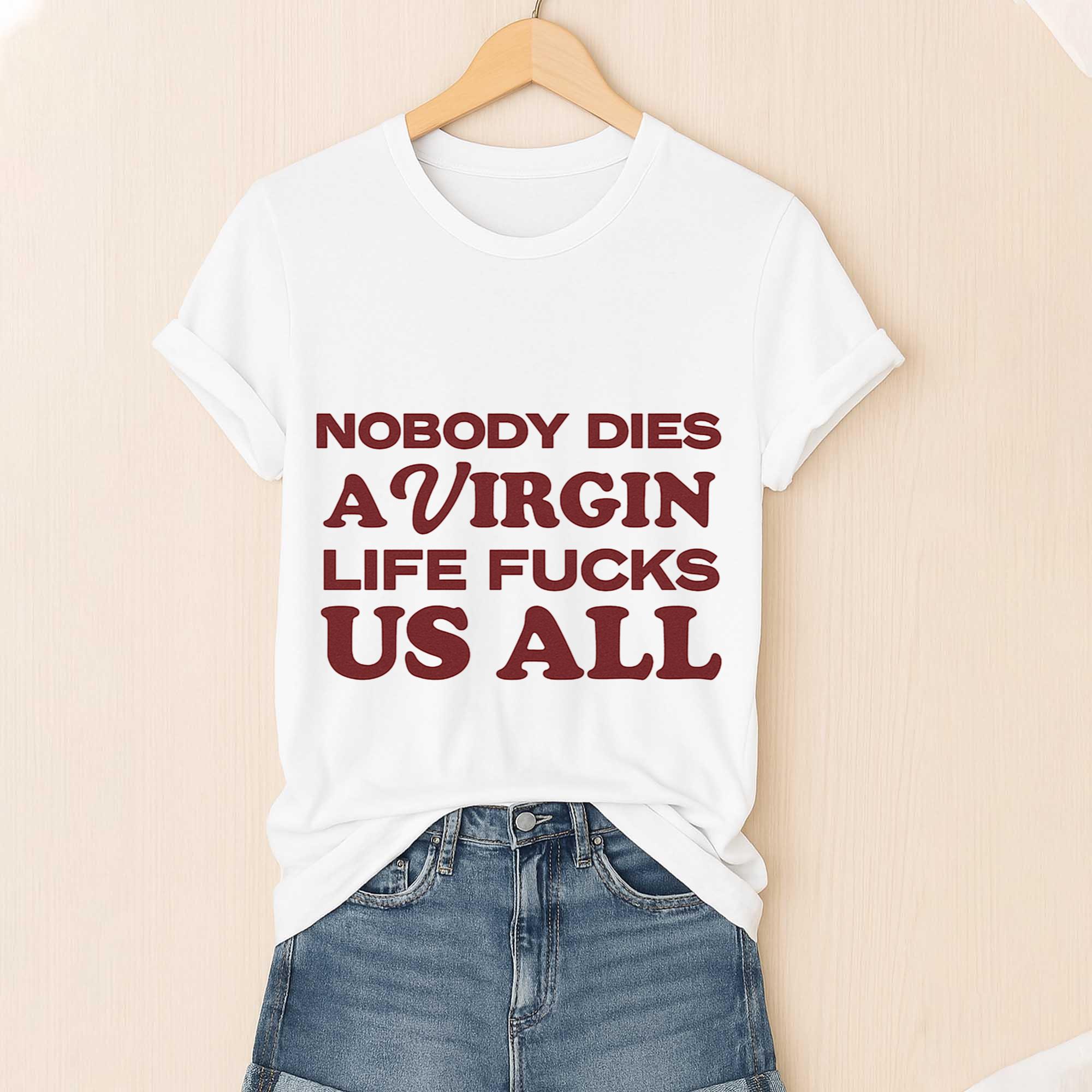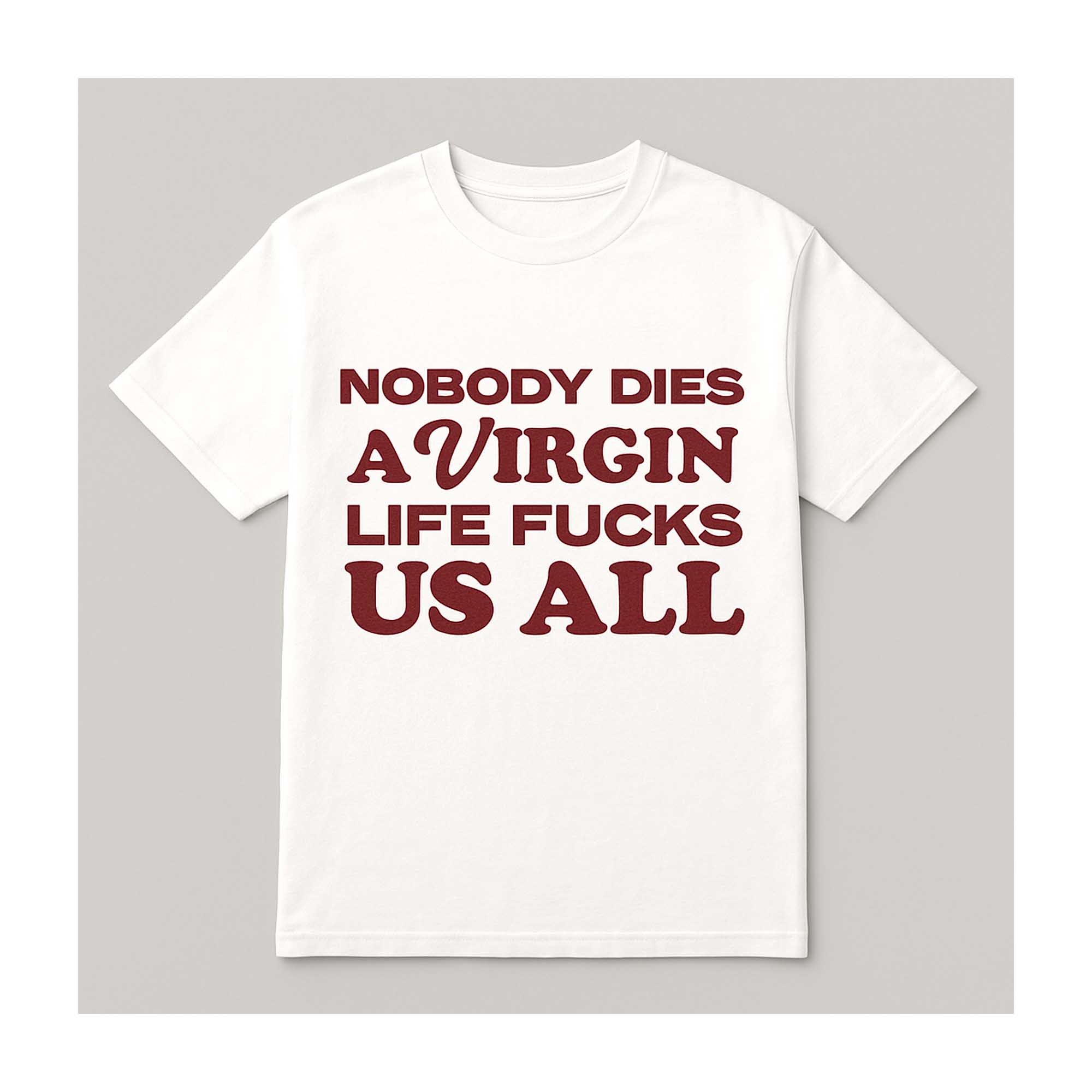 Love Nobody Dies A Virgin Life Fucks Us All Shirt? Personalize it your way with our custom options! Choose your design, colors, and style to reflect your personality, convey a special message, or craft a one-of-a-kind gift.
