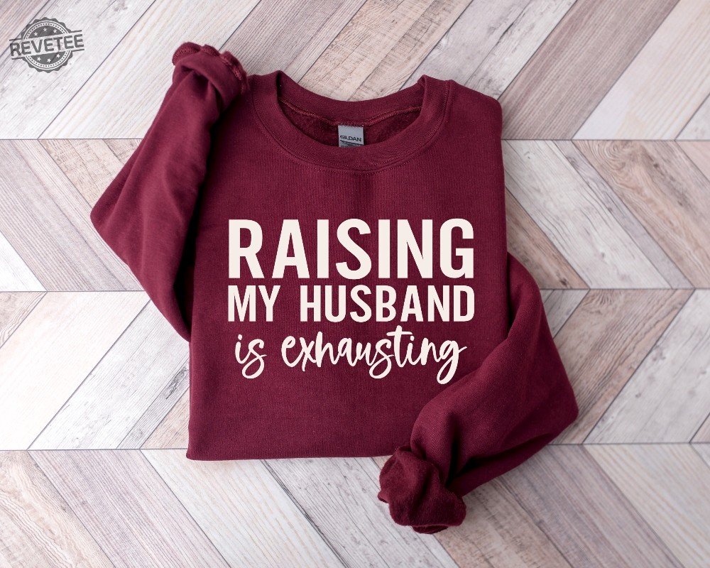 Love Raising My Husband Is Exhausting Sweatshirt Wifey Sweater Sarcastic Wife Shirt Funny Saying Shirts Funny Wife Gift Tees Unique? Personalize it your way with our custom options! Choose your design, colors, and style to reflect your personality, convey a special message, or craft a one-of-a-kind gift.