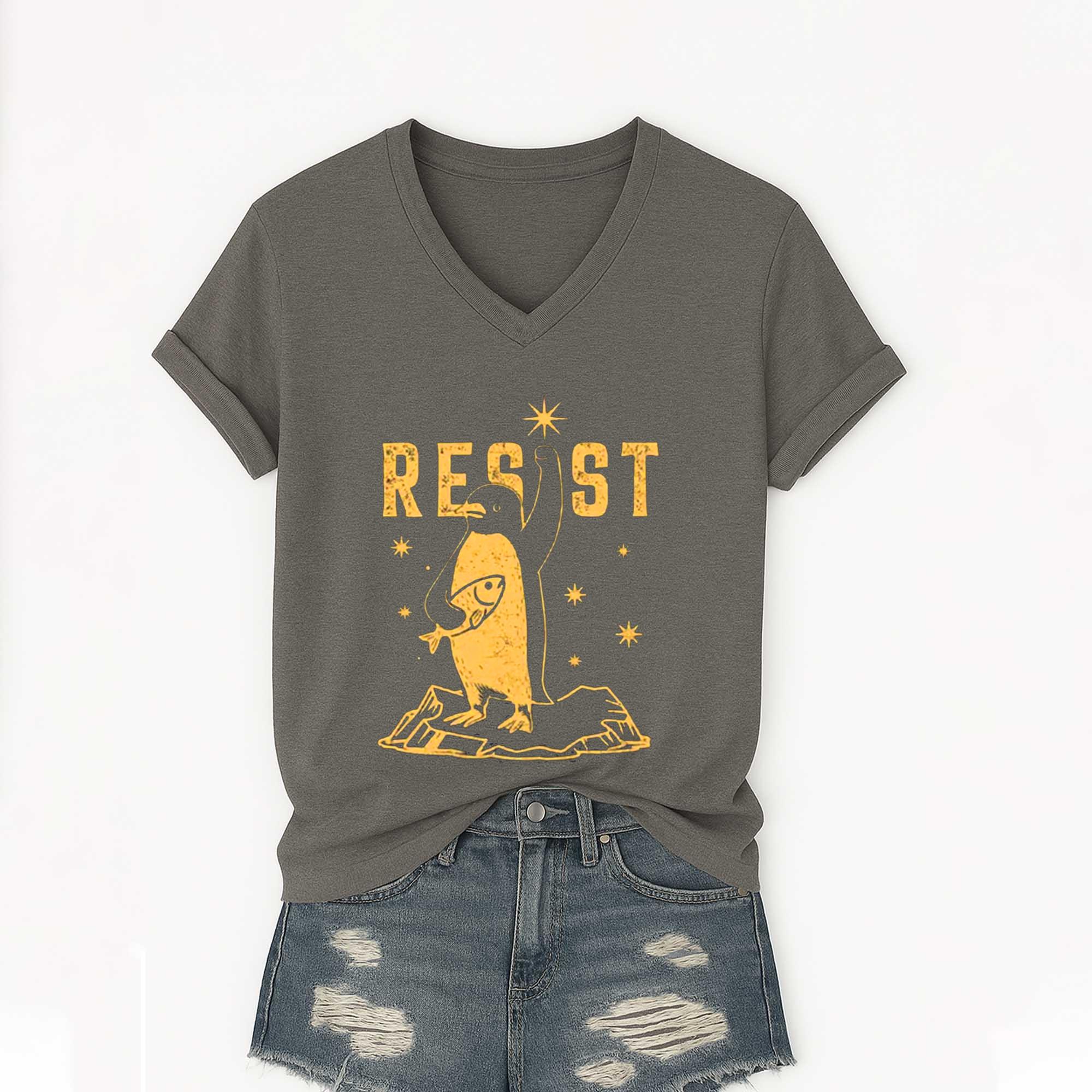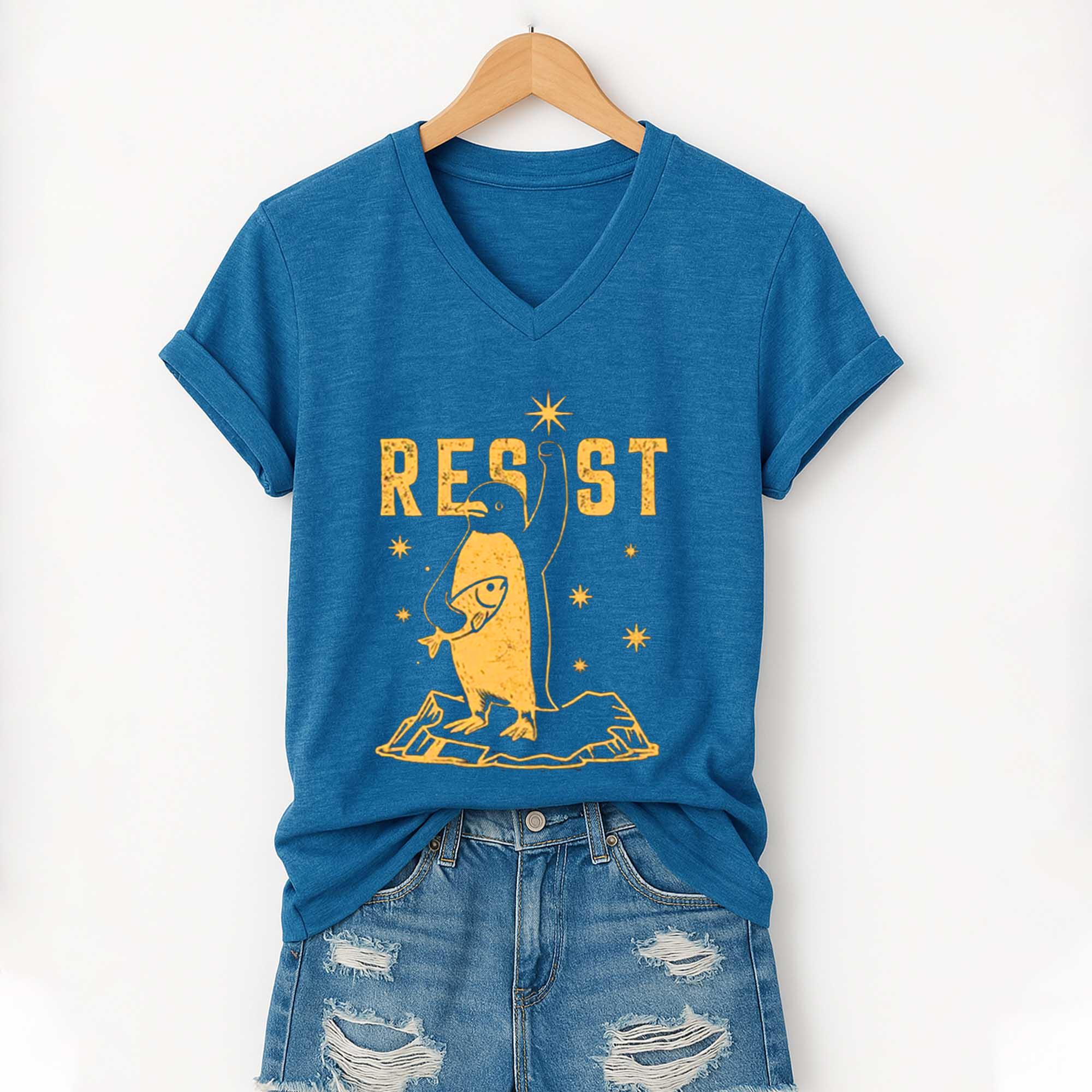 Love Resist Penguin America V-Neck T-Shirt? Personalize it your way with our custom options! Choose your design, colors, and style to reflect your personality, convey a special message, or craft a one-of-a-kind gift.