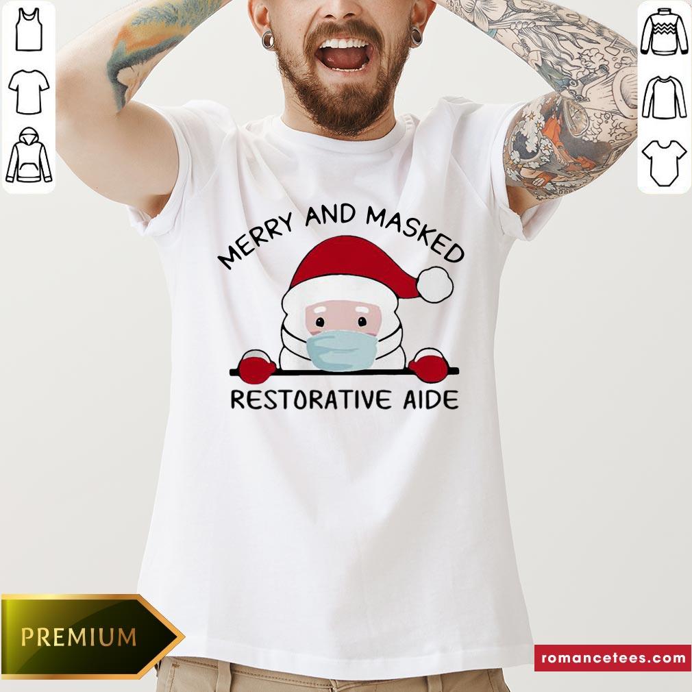 Santa Face Mask Merry And Masked Restorative Aide Christmas Shirt