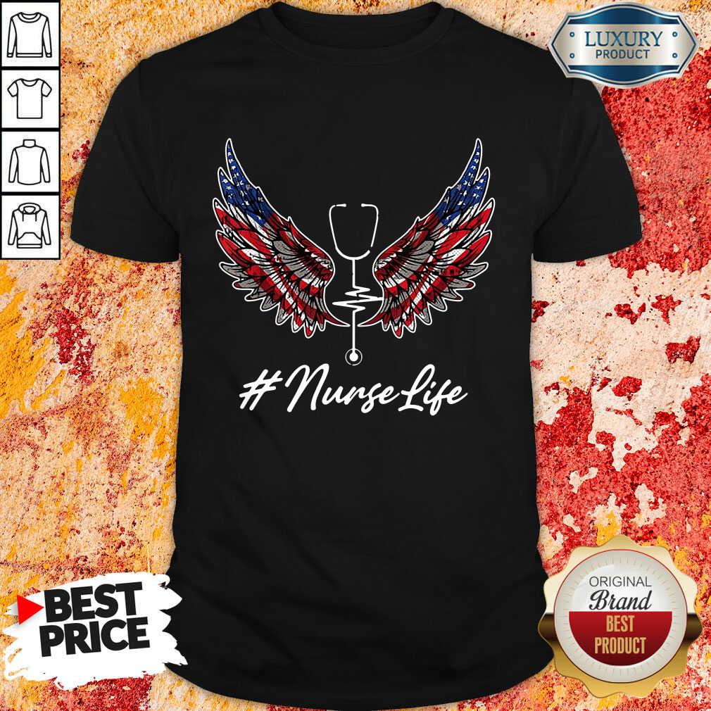 USA Nurse Angel Wings Patriotic American Flag 4th Of July Nurse Life Shirt
